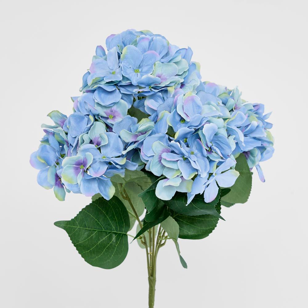 Hydrangea Bundle with Leaves 55cm Blue