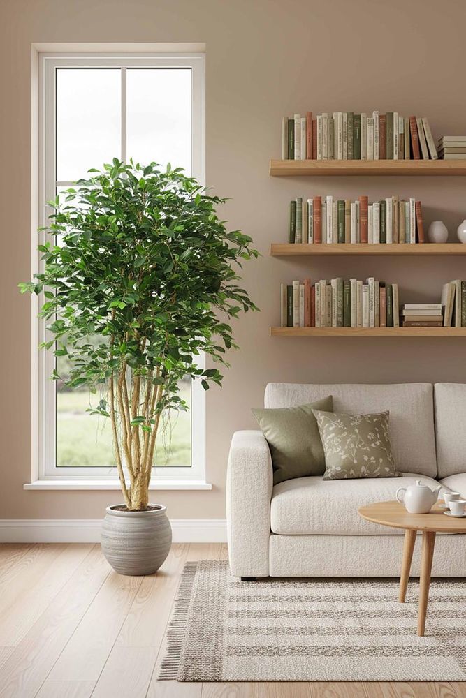 Step into the realm of leafy luxury with our arrtificial Ficus Retusa, the botanical maestro of your indoor jungle. Thanks to cutting-edge technology, it's as realistic as it gets - your guests might leave thinking it's the real deal. There's no need for green-thumb anxiety here - it's hypoallergenic and requires zero maintenance beyond a quick dusting with a static feather duster. So bid farewell to wilted woes and hello to perpetual greenery without the hassle. Plus, its biophilic design ensures your mood and motivation get a natural boost with every glance.