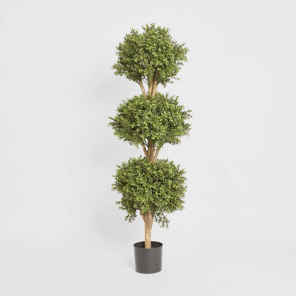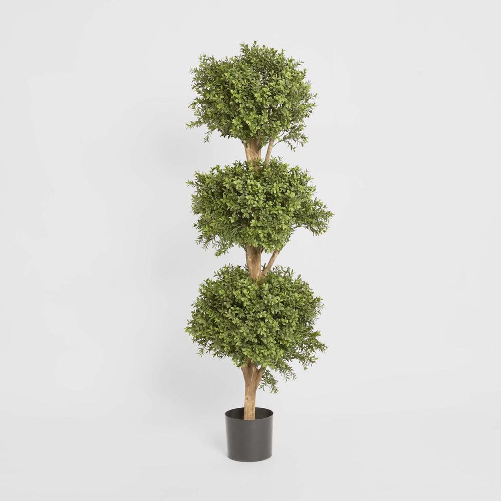 Level up your decor game with our artificial Boxwood Triple Ball Tree, featuring three spherical clusters of dense foliage stacked atop one another. Thanks to cutting-edge technology, these faux beauties are so realistic, you'll have to resist the urge to water them. Plus, with their biophilic design, they'll work wonders for your mood and motivation – no green thumb required. And for those prone to allergies, fear not – these trees are hypoallergenic, ensuring a breath of fresh air without any side effects. Bid farewell to wilting worries and hello to maintenance-free marvels, just a quick dusting with a static feather duster and you're ready to roll in green glory. Disclaimer: To assist you in selecting the right planter size, the diameter of the tree pot ranges from 15-30 cm. Please ensure your chosen pot, planter, or urn has a larger diameter. Additionally, please note that the height of the trees may vary depending on the tree leaves. If you need more precise guidance, feel free to contact us, and we’ll be happy to provide you with exact measurements and assist you further